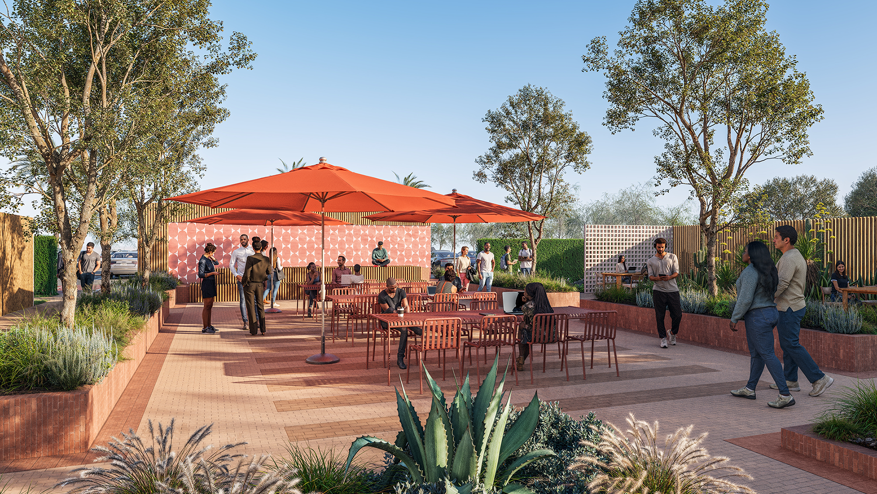 Flexible Outdoor Gathering Areas On-Site Cafe and Market Dedicated Drop-Off Area Secure Bike Parking On-Site Open-Air Parking EV Charging Stations Weekly Car Washing